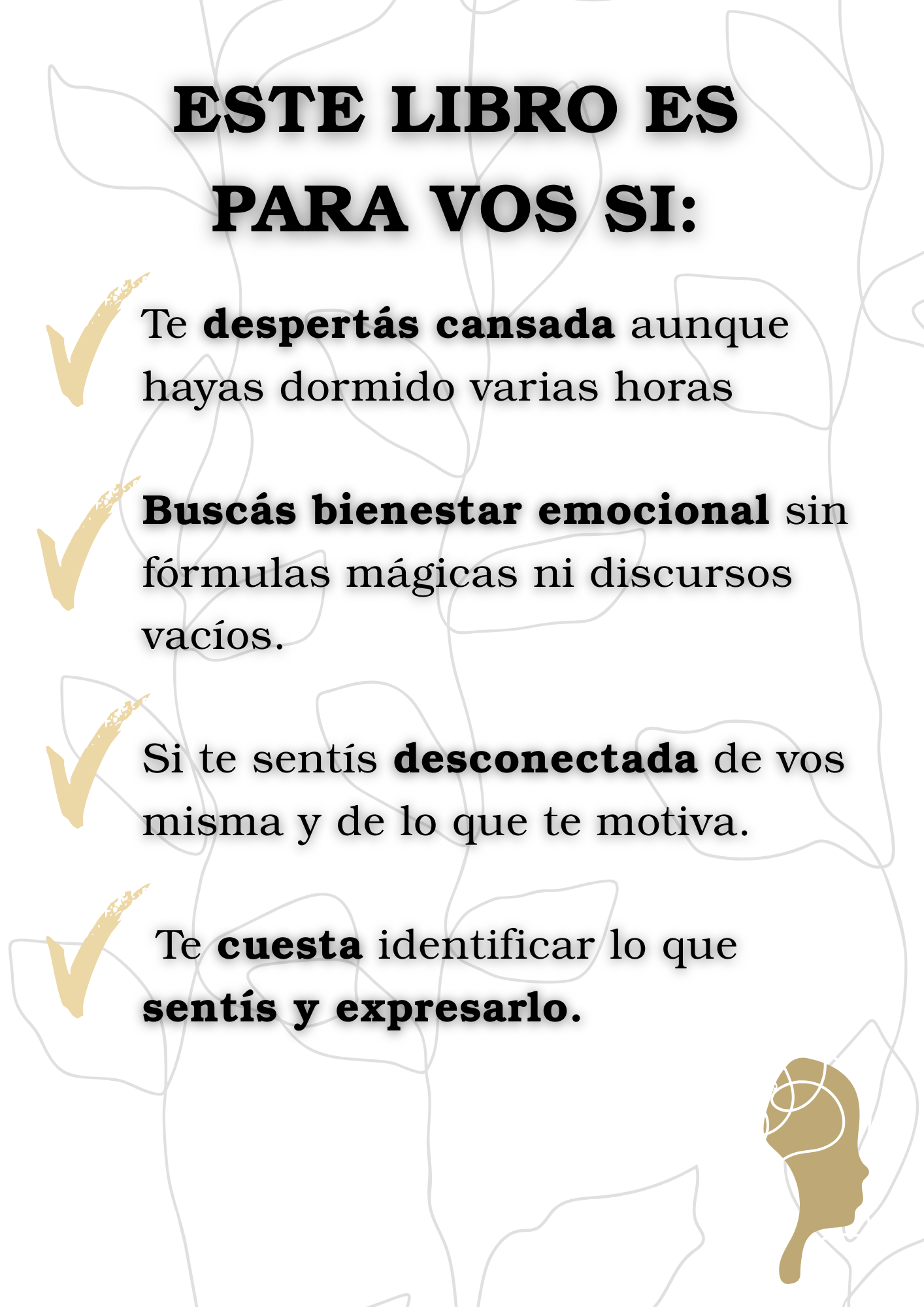 No promete cambios mágicos ni frases vacías. Este ebook ofrece herramientas concretas, aplicables a tu día a día, con foco en bienestar emocional real y sostenible.